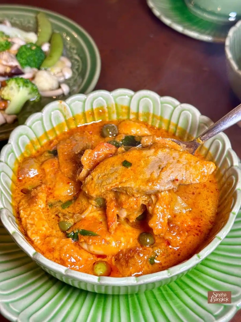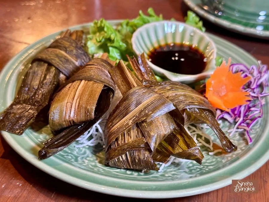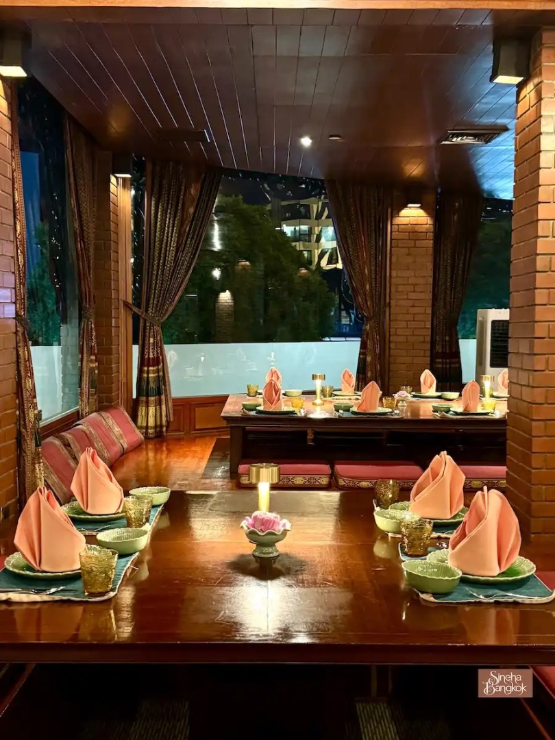 สิ่งที่ Sineha Bangkok ชอบคือ การจัดที่นั่งที่มีทั้ง นั่งพื้นกับโต๊ะตั่งเตี้ยแบบไทยสมัยก่อน และโต๊ะปกติ ใครอยากอินกับบรรยากาศไทยแท้แบบดั้งเดิม ต้องลองเลือกมุมนั่งพื้นดูนะคะ มันทำให้บรรยากาศมื้ออาหารนั้นพิเศษและน่าจดจำยิ่งขึ้น