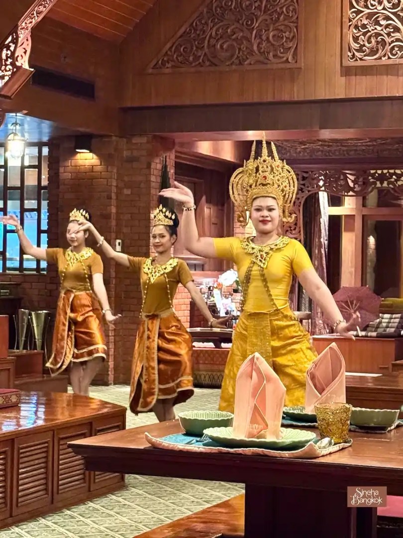 บรรยากาศตอนนั่งทานข้าวแล้วมีเสียงดนตรีสด พร้อมนักแสดงออกมาฟ้อนรำกลางศาลาไม้สักคือ สุดประทับใจ รู้สึกเหมือนได้ชมศิลปะไทยในโรงละครเล็ก ๆ แต่เป็นกันเองกว่ามาก และไม่ต้องเสียค่าเข้าชมเพิ่มด้วย